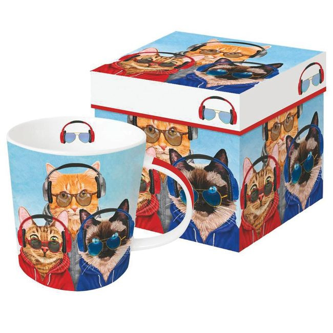 Kubek porcelanowy o pojemności 400 ml marki Paper Products Design z zabawnym motywem zrelaksowanych kotów. Wykonany z porcelany magnezowej, która łączy trwałość z subtelną elegancją. Poręczne ucho zapewnia wygodę picia. Zapakowany w ozdobne pudełko o tym samym motywie – to doskonały pomysł na upominek dla miłośników kotów i ciepłych napojów.