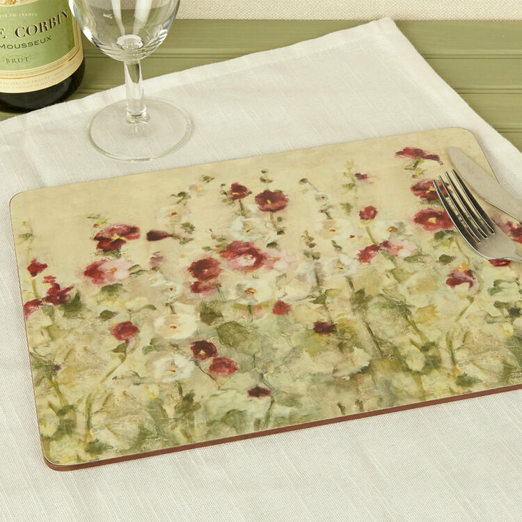 Podkładki niczym malowany obraz pól pełnych kwiatów.Subtelne biele i wyraziste czerwienie ładnie kontrastują z kremowym tłem.